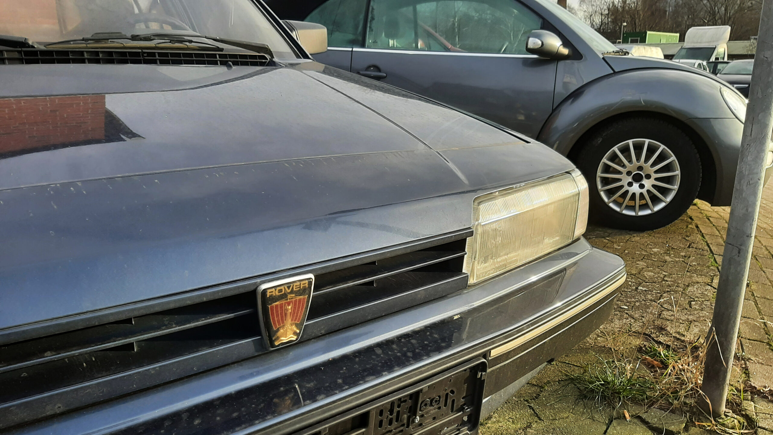 und Oldtimern zwischen langweiligen Gebrauchtwagen suchen (Ich berichtete darüber), doch an dem Tag hatte ich einfach keine Lust. Draußen war es kalt, in meinem Kombi war es schön warm und ein tolles Lied spielte auch noch im Radio. Und wahrscheinlich wäre ich auch nicht angehalten, wenn ich im Augenwinkel nicht die Front eines Autos gesehen hätte, die mir überhaupt nicht bekannt vorkam. Ich hatte noch ein wenig Zeit, also wendete ich meinen Golf geschwind auf dem Platz eines Gebrauchtwagenhändlers und fuhr zurück. Es war ein altes Auto, recht kantig und mit Radkappen. Zumindest das konnte ich schon einmal sehen. Und auch das Rover-Zeichen konnte ich erkennen, als ich meinen Kombi davor parkte und ausstieg.