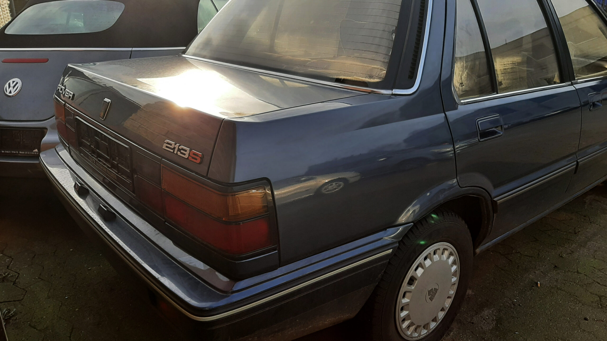 oder einen Rover 216 Vitesse bestellen. Dann brauchte man beim Kaltstart auch nicht an einem Choke herumfummeln, sondern konnte sich über eine Einspritzung und über ganze 105 Pferde unter der Haube freuen. Dieses Stufenheck war kein Vanden Plas und auch kein Vitesse, aber die beiden Ausstattungsvarianten waren in Deutschland auch nicht erhältlich. Es war einfach nur ein kleiner 213S mit einer Dreigang-Automatik und einem manuellen Choke, der mir links neben dem Lenkrad auffiel. Leider konnte ich keine Informationen finden, die mich auf ein Baujahr hinwiesen. Ich tippe aber, dass dieses Exemplar zwischen 1987 und 1989 in Longbridge vom Band lief.