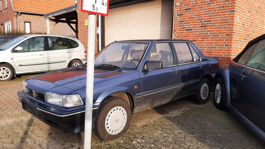 ich bis dato noch nicht gesehen. Ich kannte wohl die runden Rover 200, die in den 90er Jahren den Kleinwagenmarkt mit britischer Eleganz aufwerteten und auch noch die Rover 200, die auf dem Honda Concerto basierten. Eigentlich wäre das schon traurig genug, doch als ich um das kleine, blaue Stufenheck herumschlich, wurde ich trotzdem neugierig, was genau ich da nun vor mir stehen hatte. Ich schoss ein paar Bilder und nahm mir vor, zu Hause zu recherchieren, was genau ich da wohl vor mir stehen hatte. Verkäufer konnte ich keinen fragen – es war ein Samstagnachmittag und niemand war mehr da. So setze ich mich wieder in meinen roten Golf und fuhr davon. Natürlich nicht, ohne noch einmal einen Blick auf den kleinen Rover zu werfen, der zwischen einem silbernen Scenic und einem New Beetle fehl am Platz wirkte.