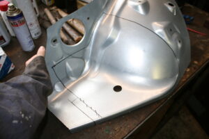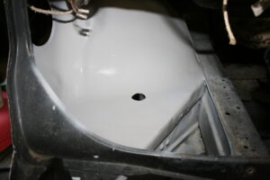 Als das Blech fertig eingeschweißt war, habe ich es dann noch grundiert, gespachtelt und anschließend lackiert. Besonders die Spachtelarbeiten haben relativ lange gedauert. Jeder Lackierer wird wahrscheinlich die Hände über den Kopf zusammenschlagen bei der