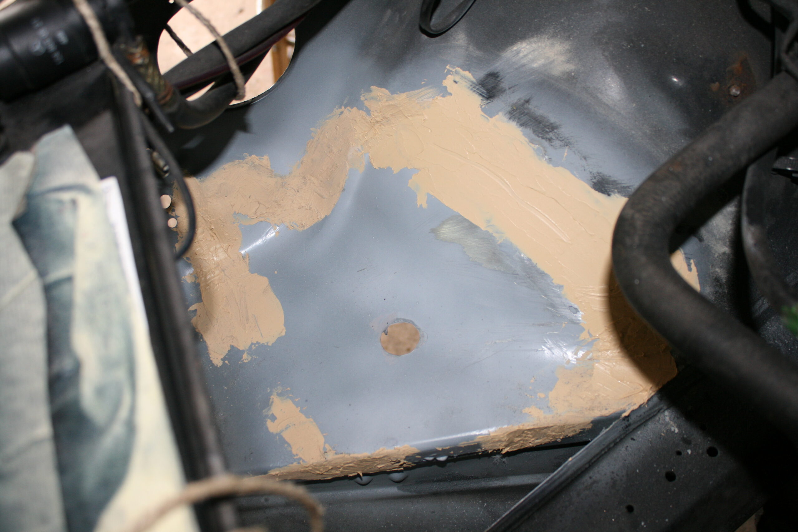 Rost an der Innenseite der Motorhaube entfernenInnenseite der Motorhaube neu lackieren- Motordämmatte ankleben