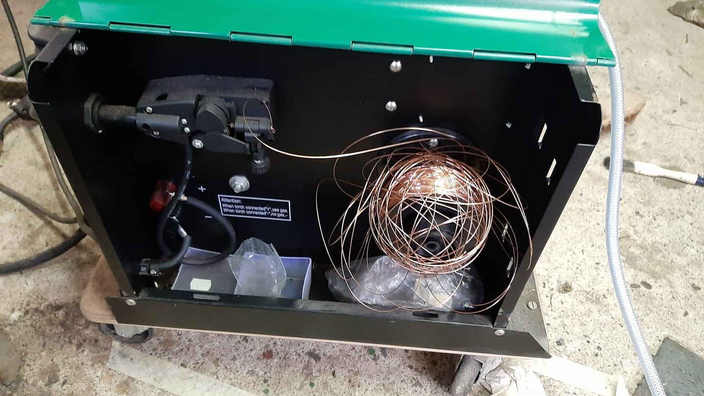 Und um die Hitze schneller aus dem Blech zu kriegen, habe ich nach den Schweißpunkten immer ein Stück Messing auf das Blech gelegt. Und das scheint gut geklappt zu haben – denn verzogen hat sich nichts. Obwohl ich noch ein bisschen an der Einstellung meines neuen Schweißgeräts arbeiten muss. Achja – das habe ich ja noch gar nicht erzählt. Mein altes Schweißgerät, das Elsa, auch schon einmal Hein und Henkelmännchen geschweißt hat, hat seinen Geist aufgegeben. Vor 8 Jahren fand mein Vater es am Sperrmüll und es hat uns wirklich noch treue Dienste geleistet. Ganz aufgeben wollen wir es noch nicht – vielleicht lässt es sich noch reparieren. Aber für die Blecharbeiten an Hein wollte ich lieber auf Nummer sicher gehen und kaufte ein neues. 420€, brandneu, sieben Jahre Garantie und herunterregelbar auf 30 Ampere. Sollte für meine Zwecke durchaus reichen.